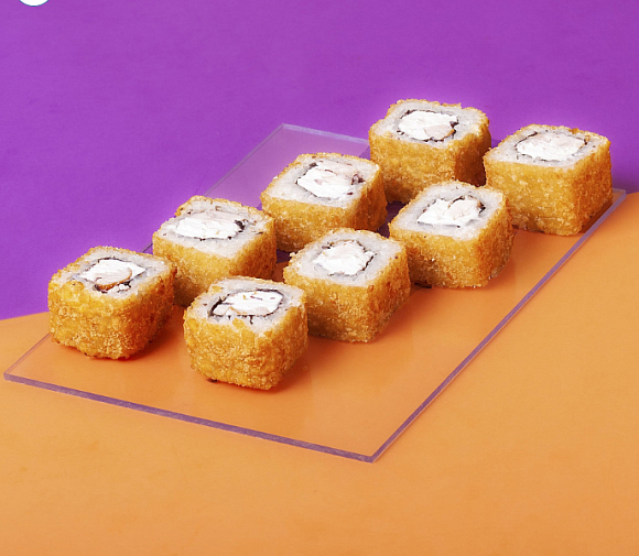 Филадельфия лайт, ясай грин, пантера, чикен темпура, лосось темпура, бекон темпура, Имбирь, васаби, соевый соус входит в стоимость сета.